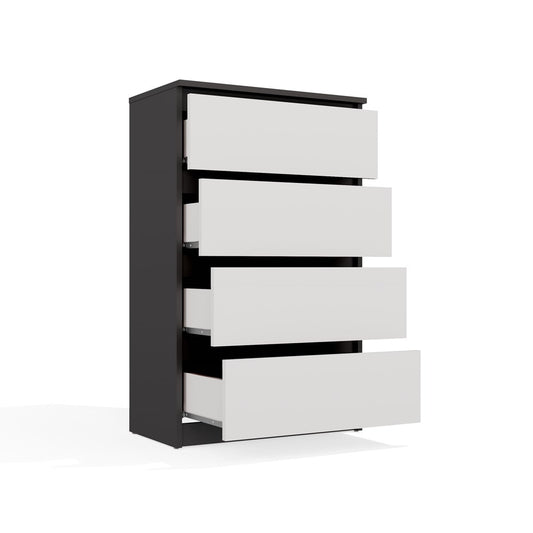 Kommode Malwa M4 | Farbe: Anthrazit/Weiss | Ideal für Wohnzimmer, Schlafzimmer, Kinderzimmer, Jugendzimmer und Büro | 4 geräumige Schubladen